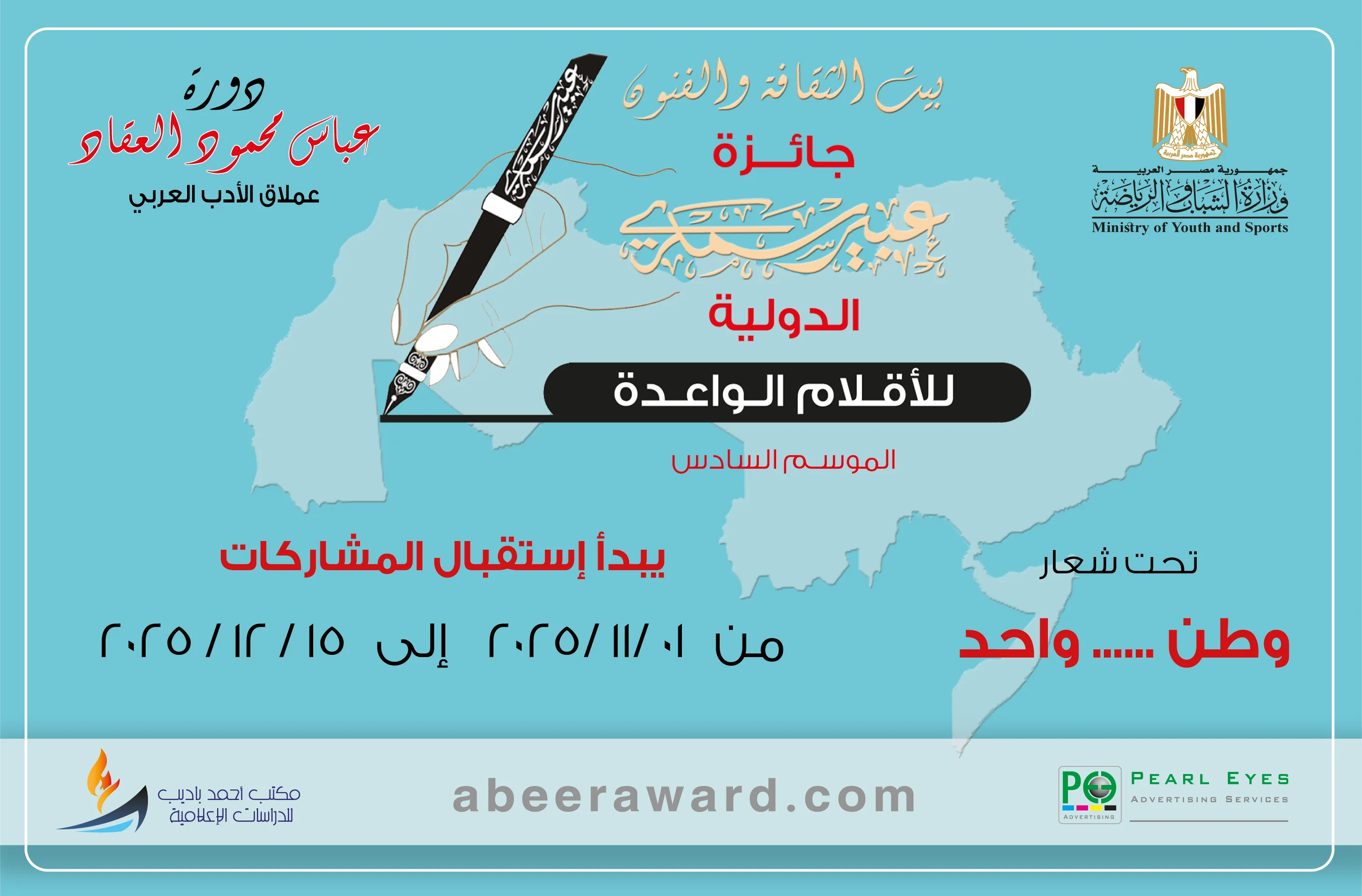 الدورة السادسة _ بإسم عملاق الأدب العربي / عباس محمود العقاد… عباس محمود العقاد أديب ومفكِّر وصَحَفي وشاعر مصري، يُعَدُّ…